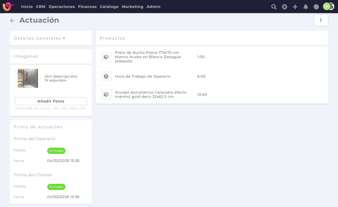 Gestión de la actuación creada (por parte del operario)